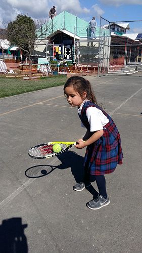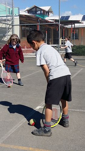 Lots of fun on court over the next 3 weeks with Kolie Van Zyl delivering the Tennis Hot Shots in schools programme. This national tennis programme allows our pupils to play tennis on appropriate sized courts with modified equipment making it easy and fun to learn tennis skills. These are our tennis stars in the making!