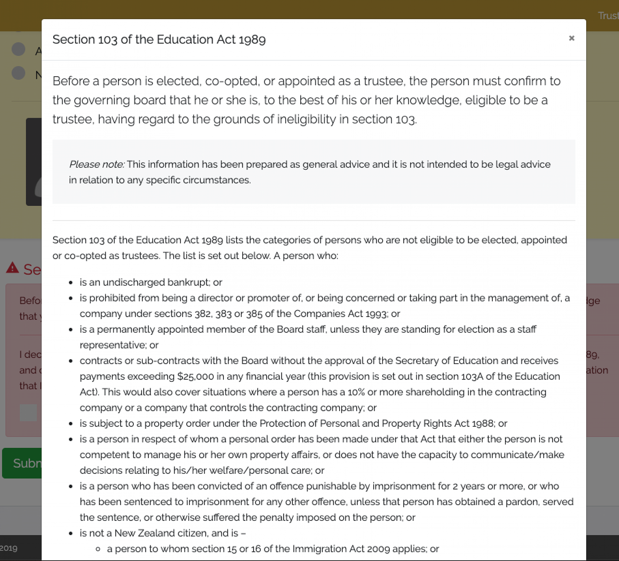 It's super easy and quick to put forward a nomination to become a candidate for your Board. Start by with visiting the School Election Manager's homepage at https://boardelections.nz/ .