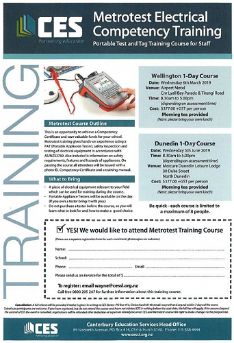 Are you in Dunedin? Then you will want to be ready for this year's Metrotest Electrical Competency Training course.