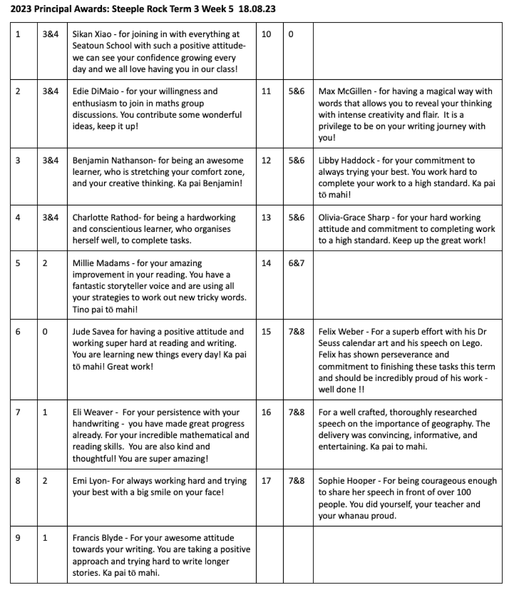 Principal's Award Photo by Te Kura o Kirikiri Tatangi - Seatoun School Principal's Awards 31 August 2023 Te Kura o Kirikiri Tatangi - Seatoun School — August 2nd, 2023 Principal Awards — Image by: Te Kura o Kirikiri Tatangi Seatoun School