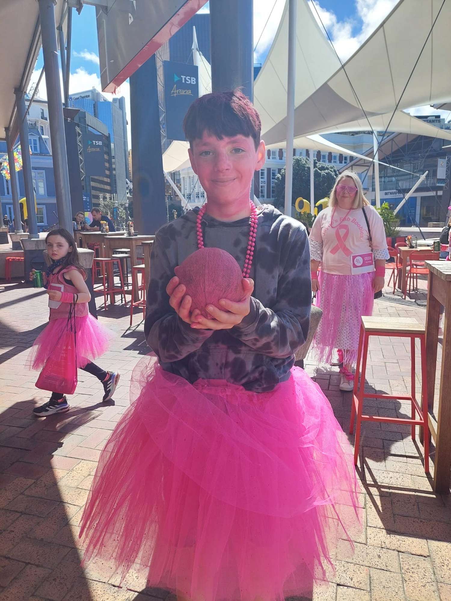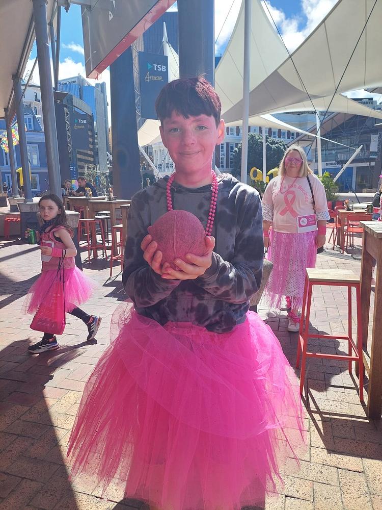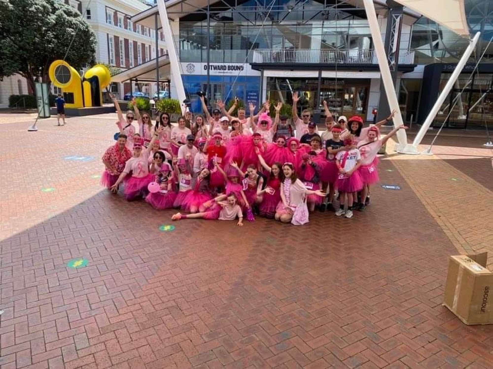 A group of past and present Seatoun students and families did a Pink Ribbon walk to raise money for Breast Cancer patients. We decided to do this walk in honour of past Seatoun school family member Jayne Tranter, a great family friend of ours who recently passed away from breast cancer. We all walked 5 km around Oriental Bay in all of our pink outfits to get into the spirit of it, including pink tutus and some people even sprayed their hair pink. The adults wore a pink shirt that said ‘Jayne’s fab boobies’ in honour of her. Once you reached the finish line you got some free things. For example you got free sausages, sparkling water, bags with cookies and a mini bag of Haribos lollies. This was a great walk and opportunity to raise money and we raised $1000 as a group and it was very fun, we hope to raise more money for this great cause! By donating, this gives the opportunity to research more and get the patients the treatment they need! If you would like to donate money to the breast cancer foundation you can click this link: