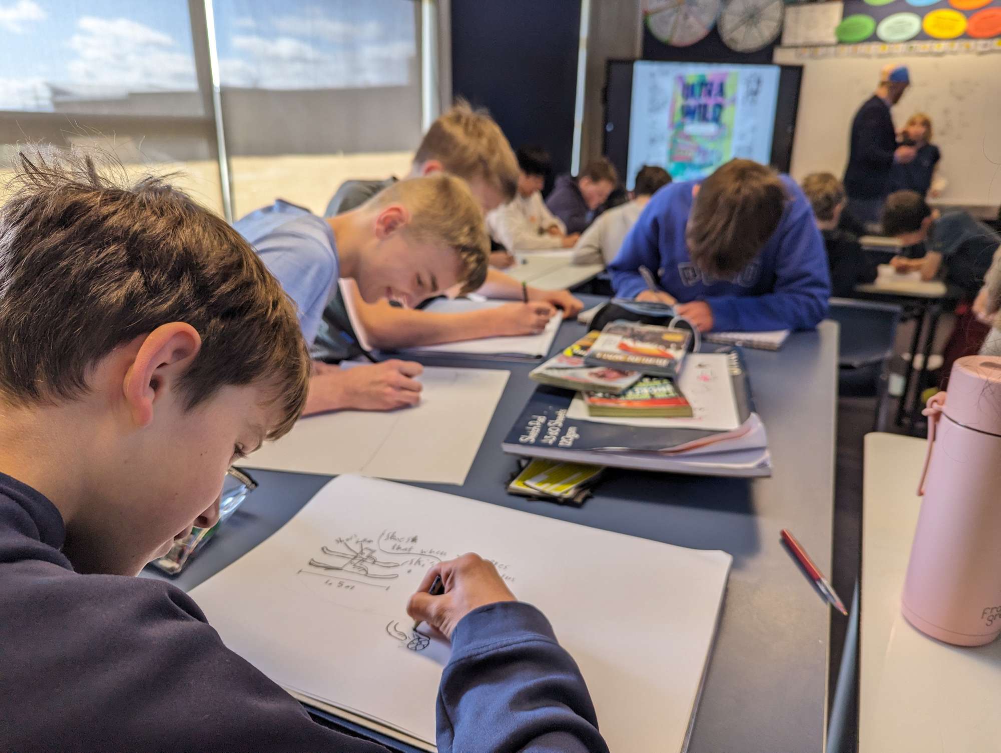 Last week the year 7/8s had industrial designer and author Steve Mushin come into Seatoun School and give a workshop about design and future cities. He also showed us his new book, Ultrawild. He spoke to us about the history of technology, design and inventions. We learnt about how quickly inventions and designs change over time. He spoke about the need to transform the world's cities into urban jungles. Steve explained why we need to plant trees to draw down carbon dioxide and pollution in cities. We learnt so much about future cities and why we need green spaces for people to enjoy, and how plants and trees can keep temperatures cooler. We had the chance to draw and invent things to improve life in cities. We had to use scale and labels to describe our inventions. There were timed drawing challenges too and we had to do quick thumbnail sketches, then we got to pitch our idea in front of the class.