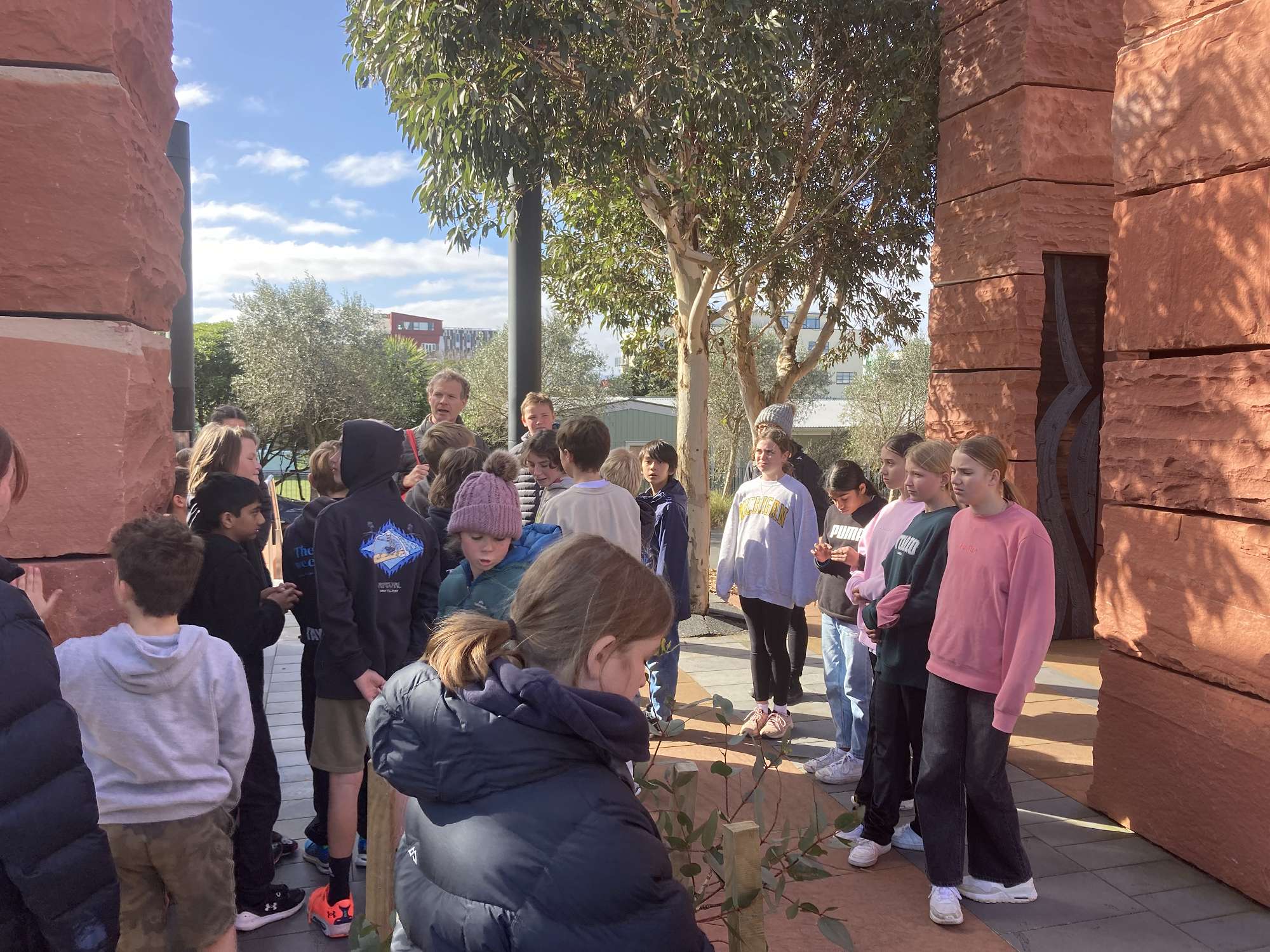 Upon arrival, we waited by Massey University for fifteen minutes or so. Then, we met up with Ricky, our guide, in a house that used to be a kindergarten. He started a speech in Māori and repeated it in English. Ricky presented us with exercises and maps, and we then headed out to visit the memorials.