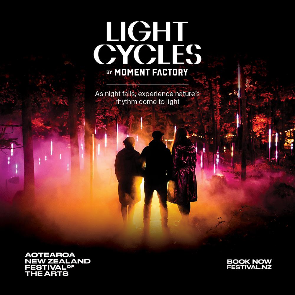 The Aotearoa New Zealand Festival of the Arts are delighted to be presenting Light Cycles by Canadian multimedia studio Moment Factory this autumn (May 11 – June 9). Light Cycles is an outdoor immersive experience, perfect for the whole whānau. We’d love to share this event with your tamariki and their whānau, and would appreciate being included in your next newsletter.