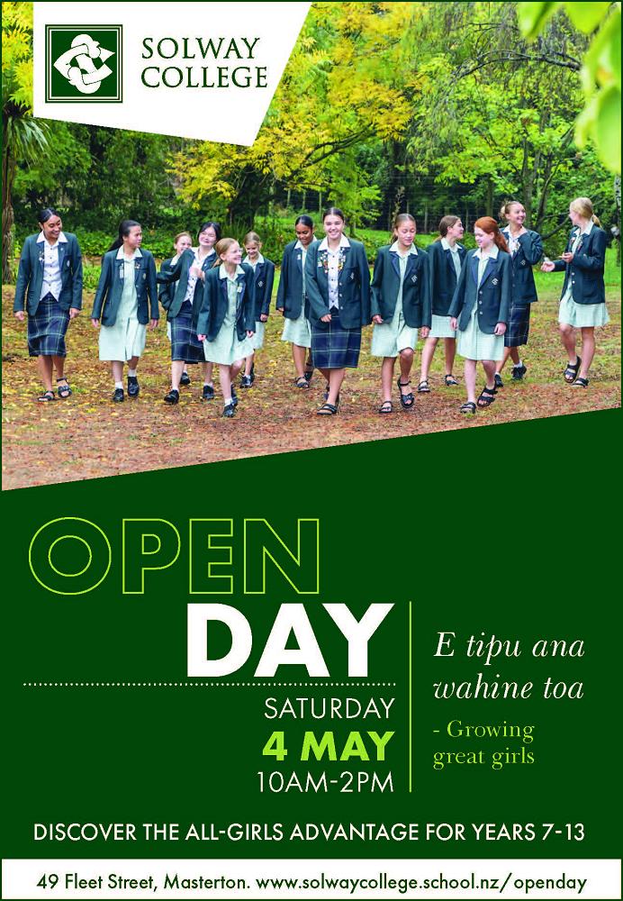 We invite your students to attend our Open Day this Saturday 4 May 2024. Please visit www.solwaycollege.school.nz/openday to find out more and to register.