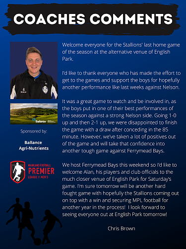 Photo by Khalil Gerbeaux Selwyn United Stallions vs Ferrymead Bays SUFC — October 2nd, 2020 MPL: Saturday 3rd October, 2pm KO at English Park Gallery Attachments Stallions vs Ferrymead Bays Match Programme