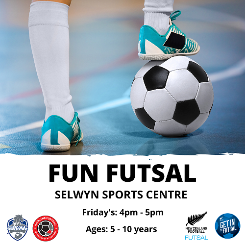 Futsal is a 5-a-side variant of football, played on an indoor court. We are delighted to once again offer Fun Futsal at the Selwyn Sports Centre.