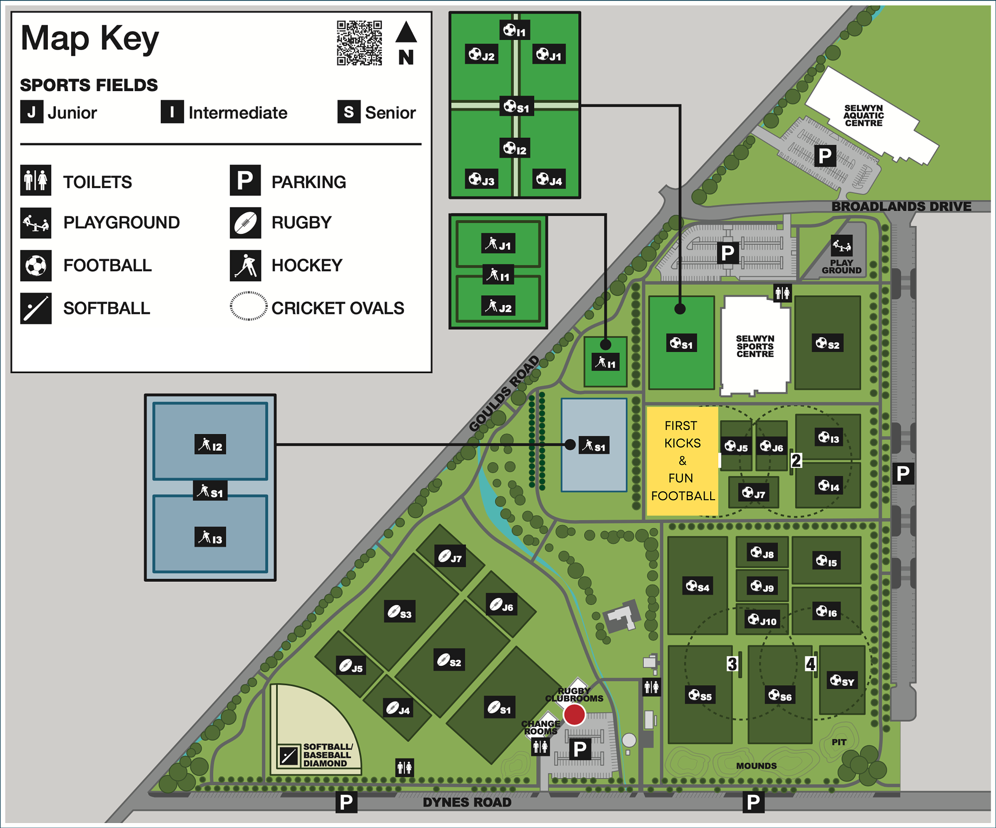 The fields are located right next to the Selwyn Sports Centre, Broadlands Drive, Rolleston.