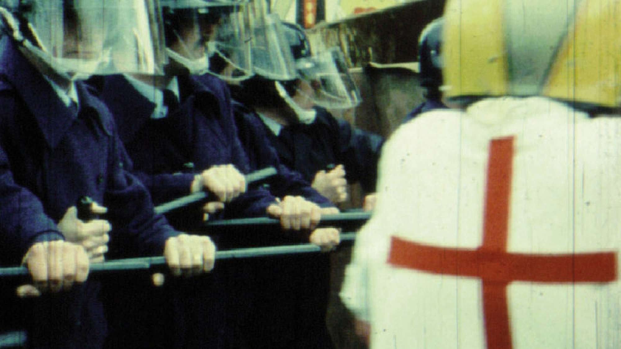 From this point forward, across different games in different cities, filming is a kinetic and almost desperate navigation of space; the camera is almost continually in motion, attempting to capture as much as it possibly can. With synchronised audio impossible, wild sound is layered into the mix to orient or disorient the action on screen. The chaos of real life violence becomes chaos on screen.