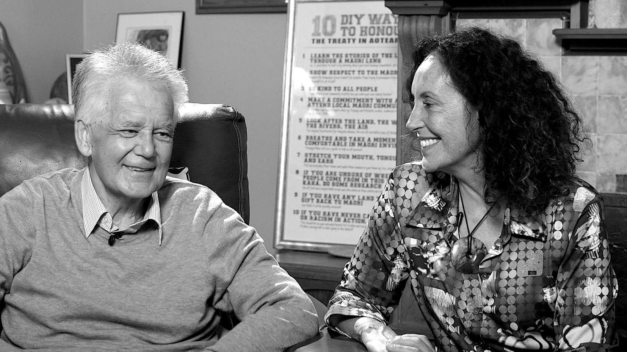 Moana was distressed he hadn’t namechecked Ngāneko Minhinnick. She began the long fight for New Zealand to sign the United Nations Declaration on the Rights of Indigenous Peoples (UNDRIP). So, we filmed a second interview in his kitchen. And after we finished, Moana and Toby sat down and watched The Crown.