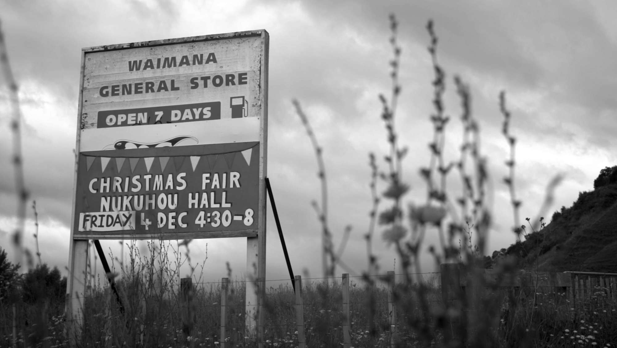 The turnoff to Waimana is marked by a colourful but fading sign, announcing a Christmas fair in the Nukuhou hall. The sign sits on a corner of State Highway 2, within te rohe pōtae o Tūhoe. We passed a film crew working on a movie based on Operation 8.