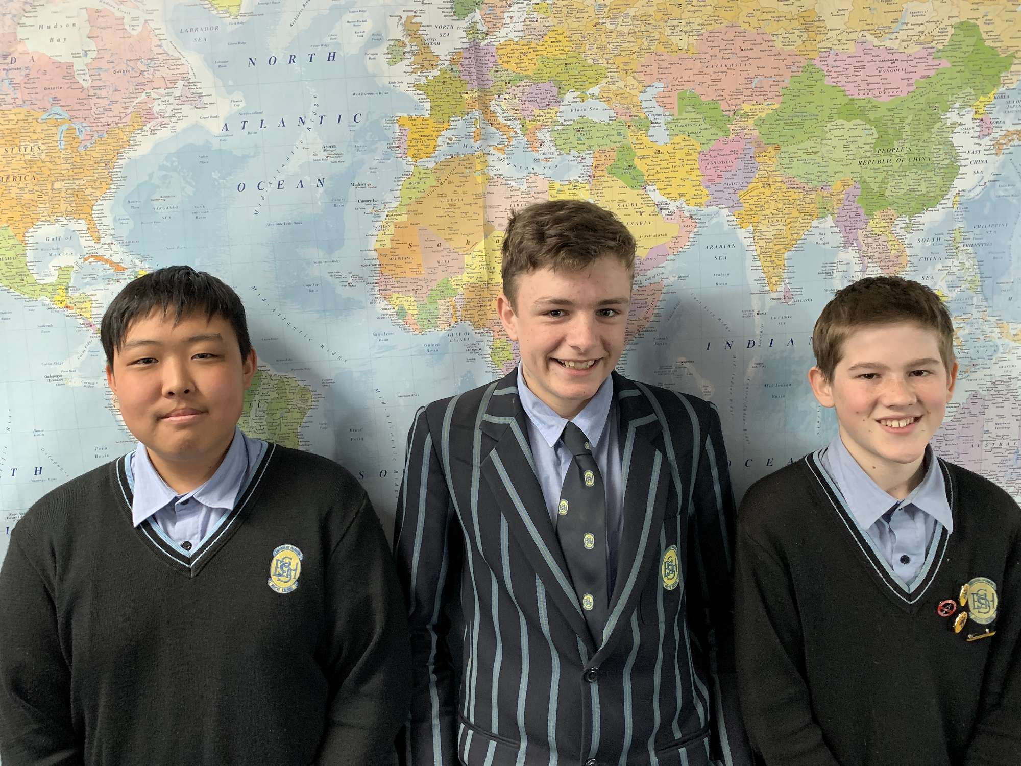 Shirley Boys' High School MJS team members were Noah Smith, Kieran Sinclair-Lomax and Liam van den Bosch, pictured above holding the SBHS ‘top team’ trophy.