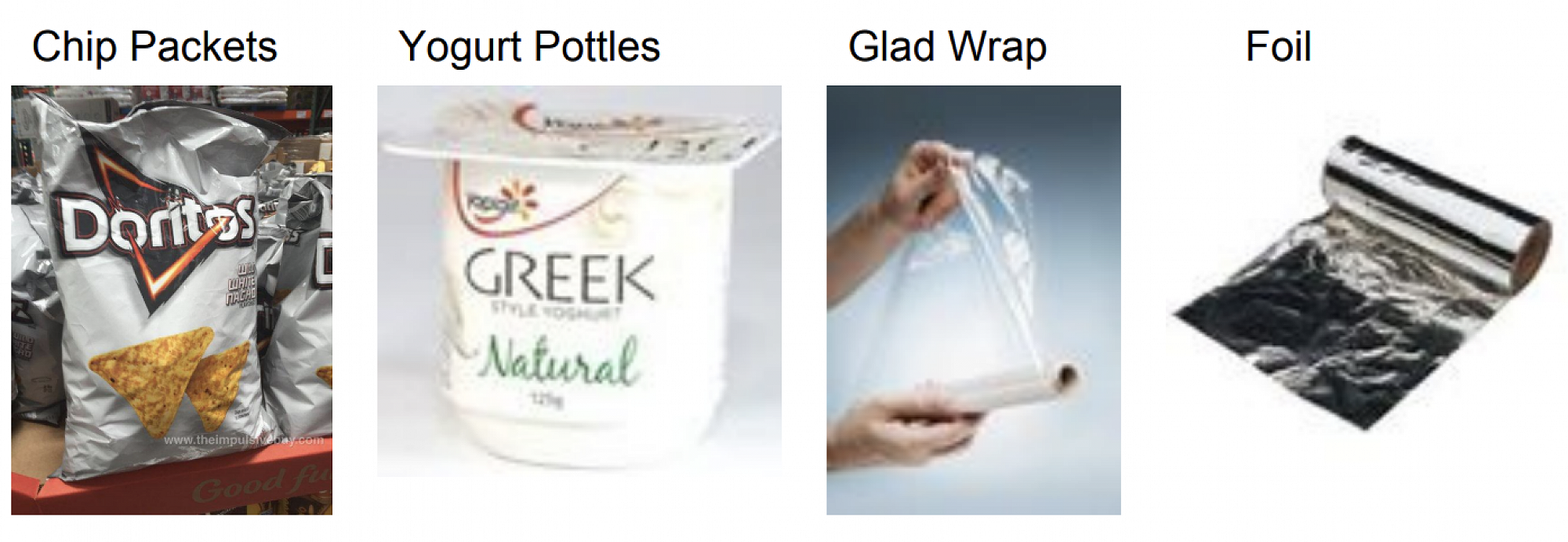 - Zip lock or plastic bags, plastic wrap or aluminium foil