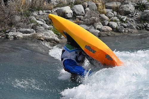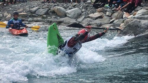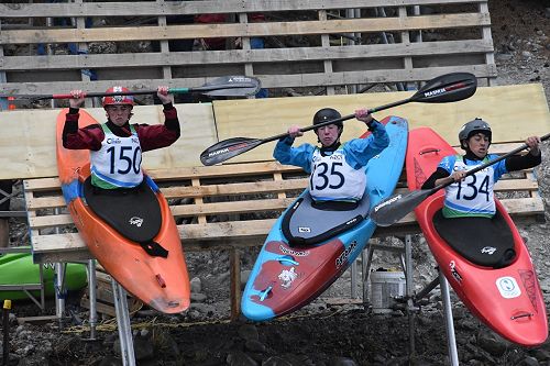 Next up was the Kayak Cross where the paddlers launched off an elevated ramp and raced down a challenging set of rapids, with a compulsory roll towards the end. The results of their time trial set the heats for head-to-head racing, where four people race the course at once with some pushing and shoving around the gates. Bowen and Eli both made it to the semi-finals, displaying some impressive skills and placing 5th and 7th. Kieran also put up a good fight, finishing in 22nd position.
