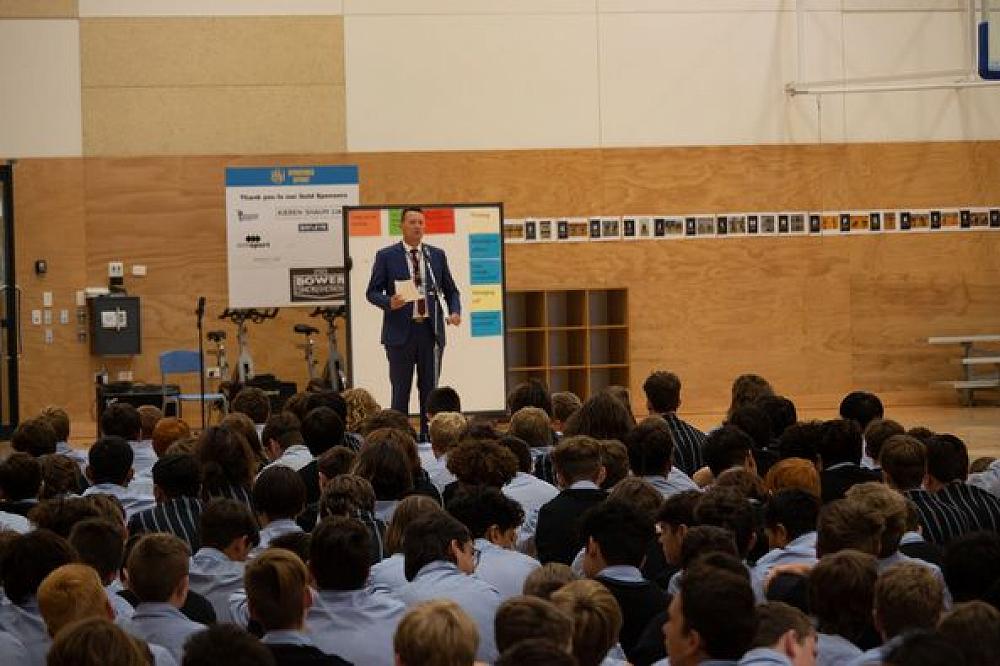 One of our teachers, Gail Collier, read a poem she wrote and our Head Boy, Cooper Gibb-Faumuina, performed a song called 'Birdie', an original New Zealand song followed by a moments silence at 12:51pm.