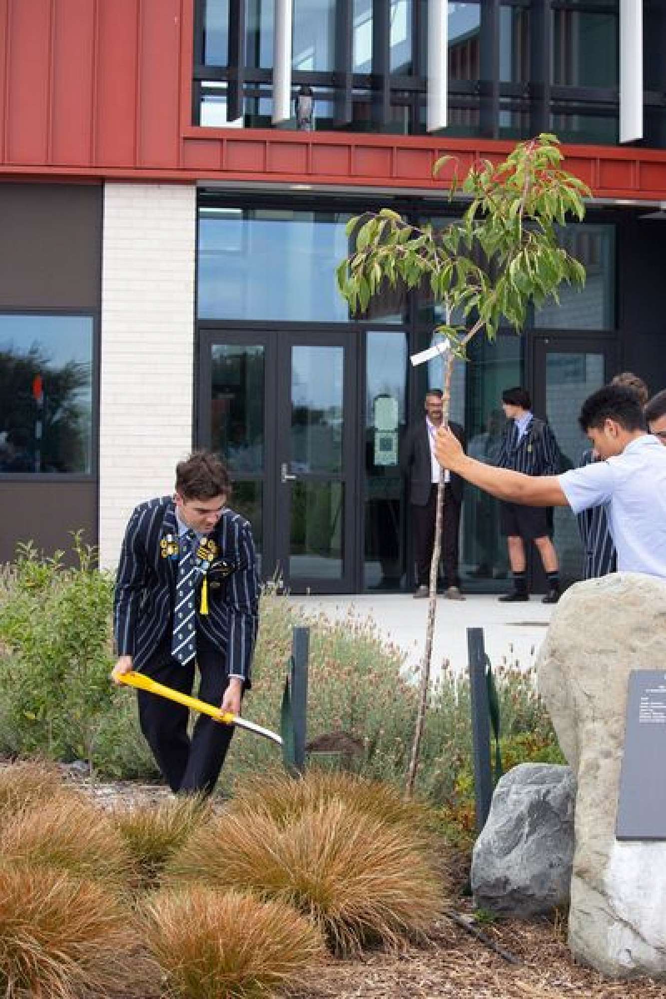 Following the assembly, students and staff were welcome to join the Headmaster and Head Prefects at a ceremony to plant a flowering cherry in remembrance of the events. This tree connects us to our old site, 77 North Parade, which was lined with flowering cherry trees.