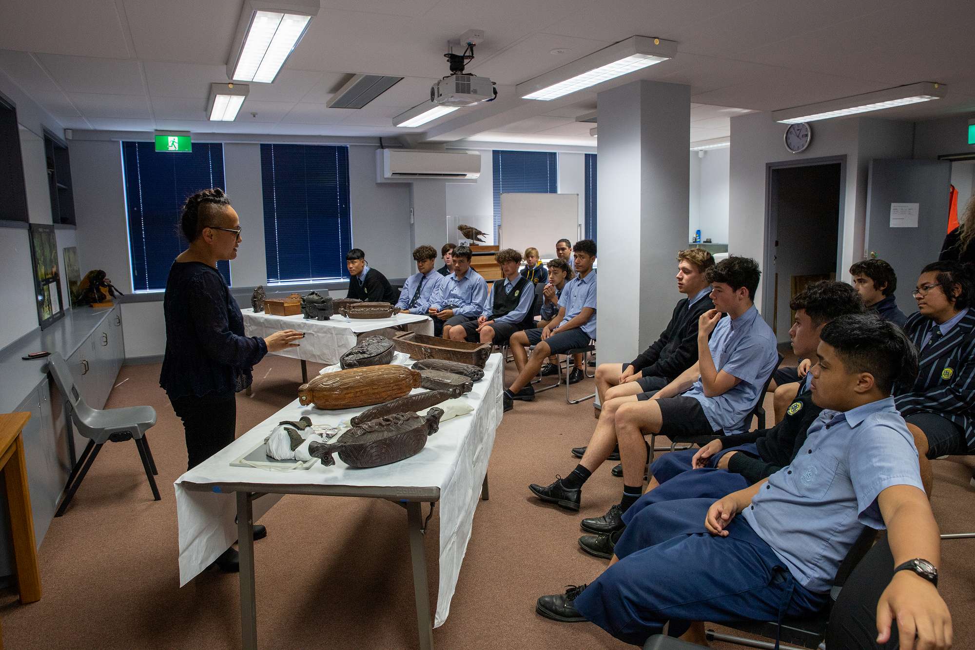 The boys and staff were very appreciative of the manaakitanga extended to the them. The boys then had an hour to appreciate the beautiful whakairo (carvings) and tukutuku panels and make some notes for their NCEA portfolios.