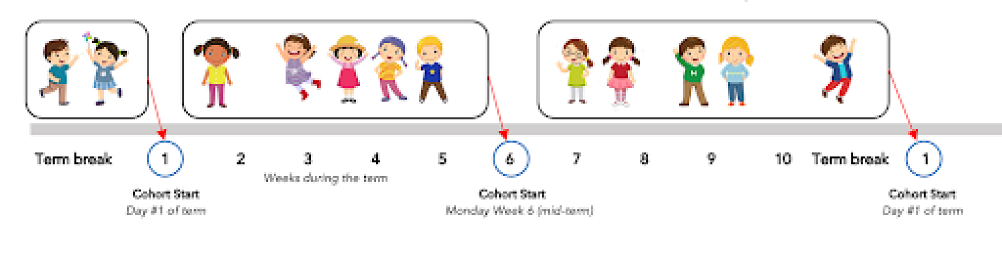 Children enrolling during Term 1 (at start of term or midterm cohorts) are considered Year One students for the year.