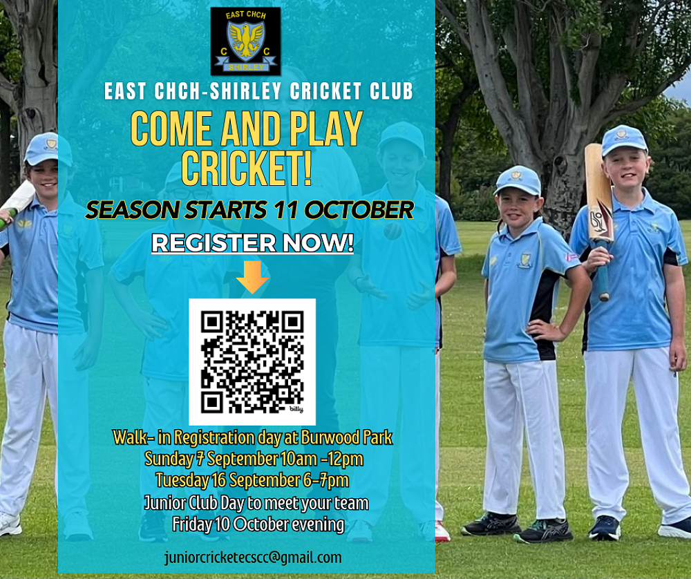 Register at: https://www.playhq.com/new-zealand-cricket/register/b5d8b0 or email Sus Black at juniorcricketecscc@gmail.com