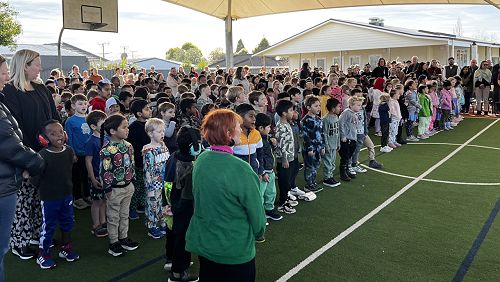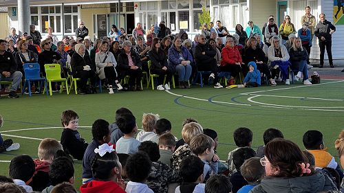 We were very happy when Tuesday the 4th of June dawned with a clear sky so we could go ahead with our showcase under the canopy for our Grandparents (or special people). Although we arranged for almost every chair in the school to be set out, our audience still filled them and spilled over to standing - again!