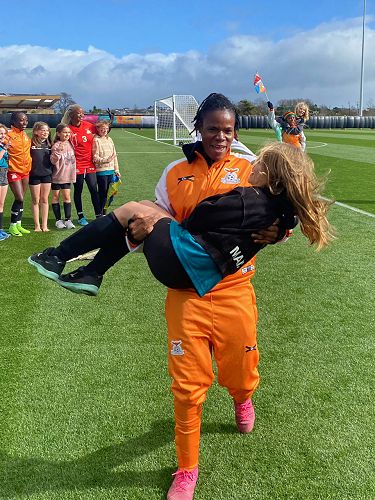 In this session, students watched the team train rigorously, talked to different media outlets and even had a go at scoring against the Zambian players!