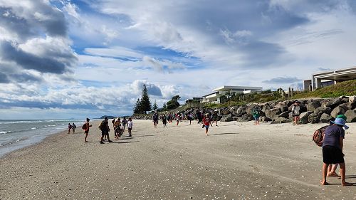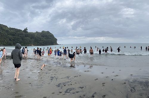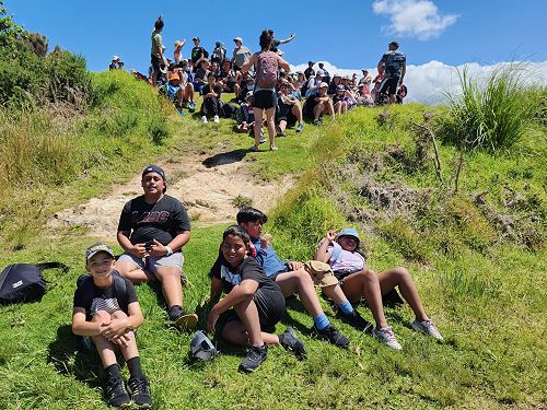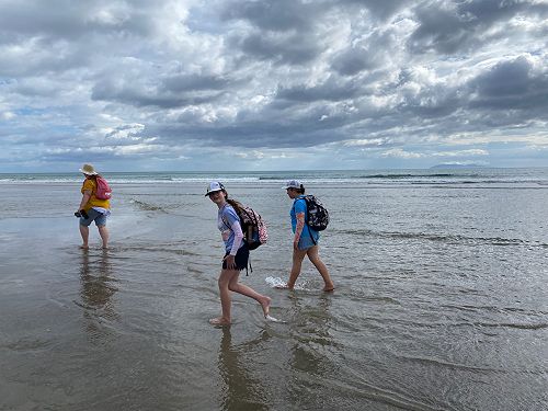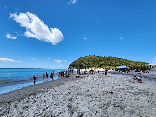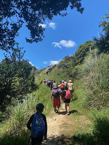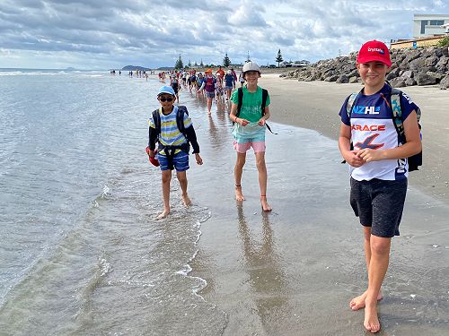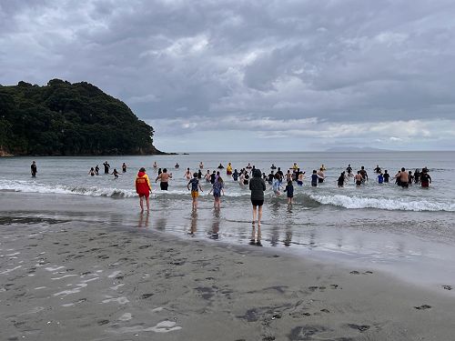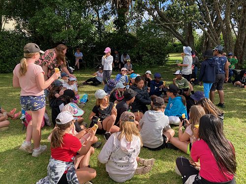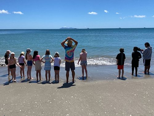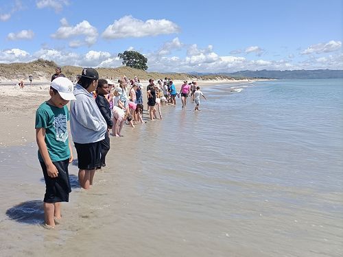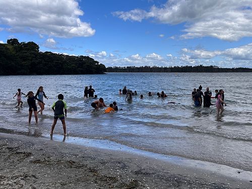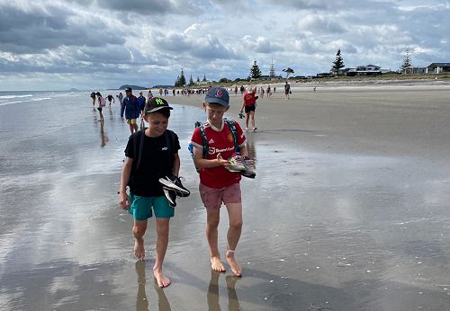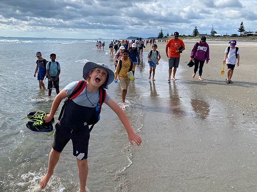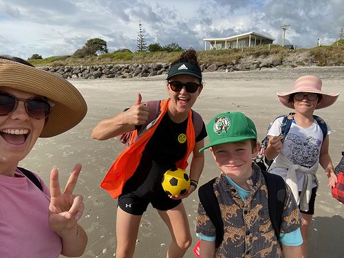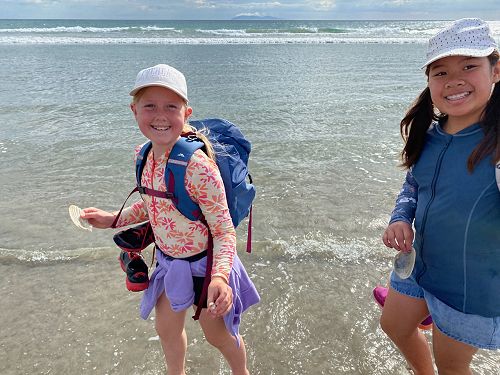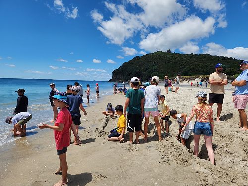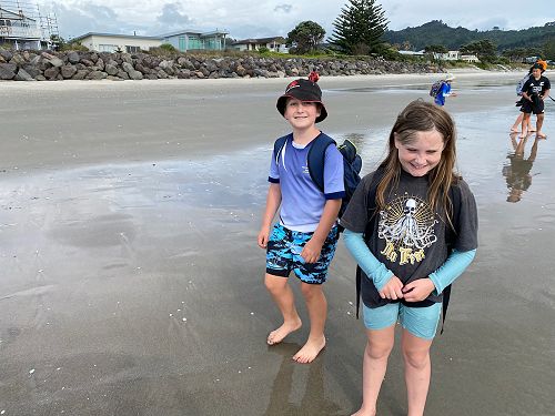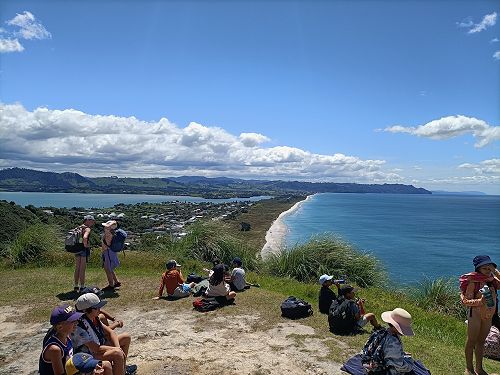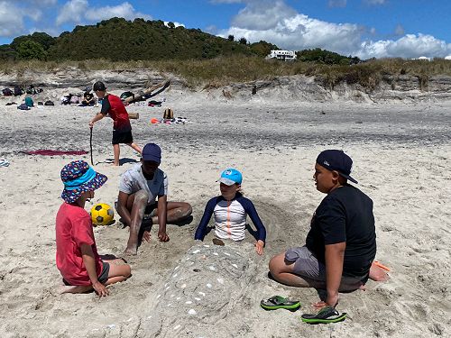 Our third day started with a good breakfast then a morning spent at the beach making sandcastles, digging big holes, covering our friends in sand, playing games on the beach or jumping the waves. We then enjoyed a delicious Mootown Meats sausage sizzle. We then enjoyed a hike up Bowentown Hill to learn about the Waihi Harbour entrance, Matakana Island and to look back on Waihi Beach. The rest of the day was spent exploring ANZAC Bay, swimming, digging holes, exploring the rock pools and making sand castles.