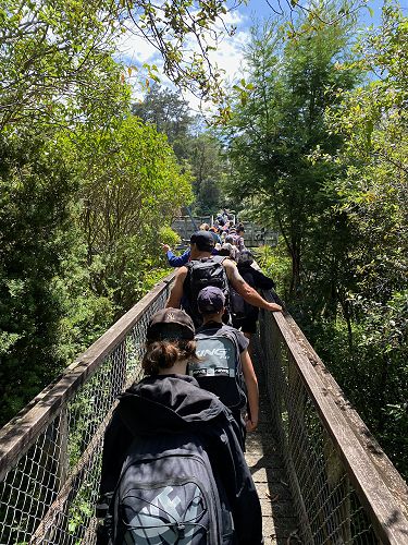 With wobbly legs and tight grips on the handrails, the Silverdale Senior Students and accompanying parents faced their first challenge - walking across the suspension bridges. A quick look around the ruins of the old Gold Mining settlement in the Karangahake Gorge was the start of a successful camp, designed to strengthen relationships and challenge students in different environments.