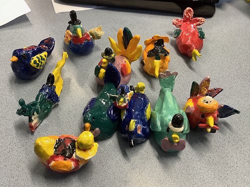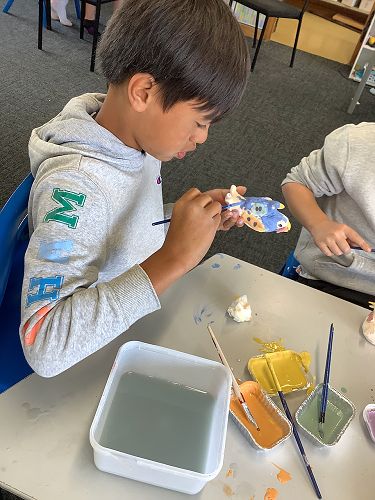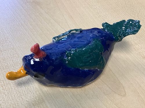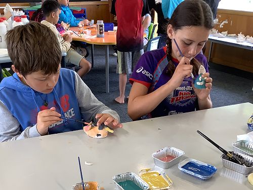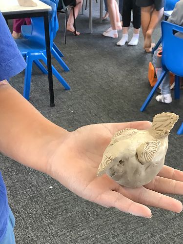 She taught us how to make a pinch pot then how to turn this into a manu (bird). We had to learn how to connect clay by scratching it, so that our manu had tails and wings. Meg then took our creation home to be cooked in a special oven called a Kiln. She then returned for a second lesson where we got to paint our manu, then dip them in liquid glass. Meg then once again heated our manu in her kiln. The results look amazing and the creativity that the children showed was ka rawe!!!
