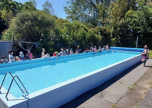 On Friday, Room 1 and 8 made paper boats to race in the newly painted swimming pool. We thought it was exciting watching the boats sail across. Some of the boats sank. Matua Tim rescued the sunken boats with a net. They were very soggy.