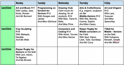 Over the last month, Year 6 Leaders have set up a schedule of lunchtime experiences to make school a better place.