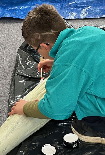The Māori Art Group began the new term planning masks of a given shape. The children did not know what/which materials they would be using, so it was a huge surprise when they were confronted with large, three dimensional husks from Nikau Palms that had been prepared for use.