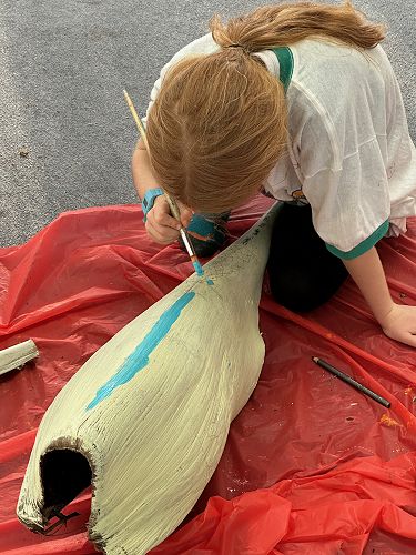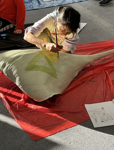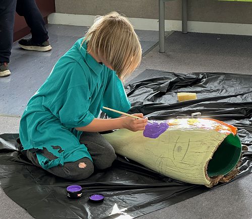 With interior, water-based house paints all children have started to paint the shapes with great care and precision. All designs are individual creations which, we hope , will be displayed around the school when completed.