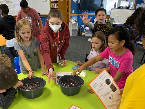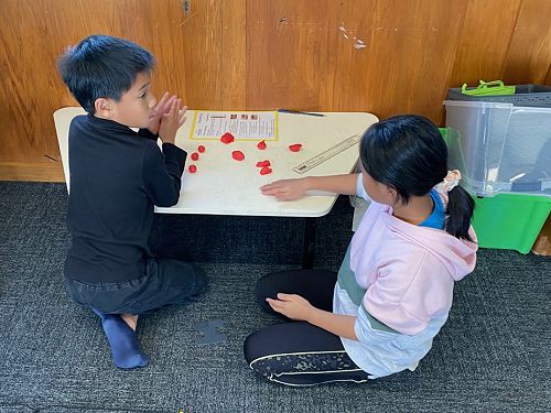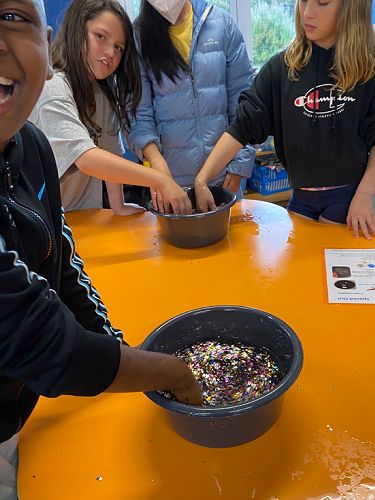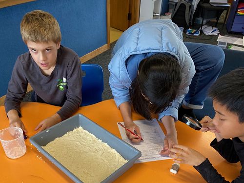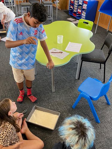 We got outside while the weather was nice and tested our hypothesis of ‘will our shadows move if we stand in the same place throughout the day?’. Some of us were quite surprised to learn that the sun stays still and it is the earth rotating which makes our shadows move throughout the day. Thanks to the house of science kit we were able to form the solar system and see all eight planets and their distance from the sun, make a galaxy, and explore how craters on the moon and other planets are made.