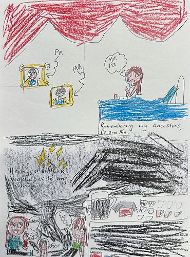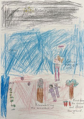 As part of our Matariki focus, Room 5 has composed a Matariki poem. We brainstormed some Matariki words and then thought about how some of the words linked together. We then worked together to compose our poem. After we had composed our poem we each did an illustration related to the poem. Some of these are attached below.