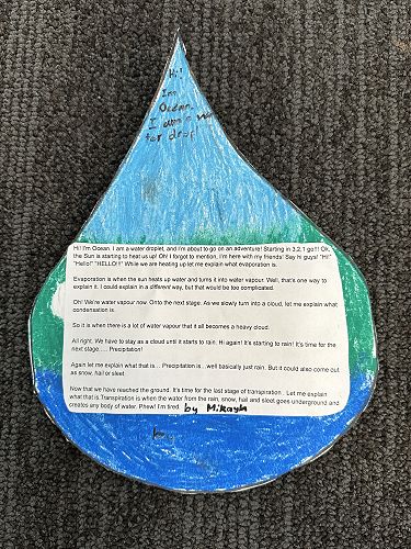 Once we learnt all the technical terms, we did a creative writing piece called “If I am a droplet of water”.