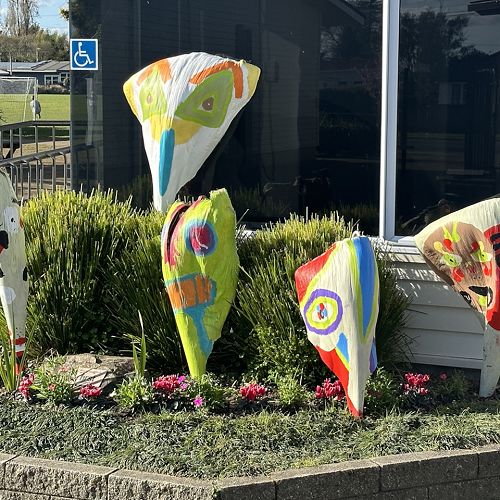 Visit this articleWith careful precision the students completed the patterning and decorating of their Nikau masks ready for a brief garden exhibition.