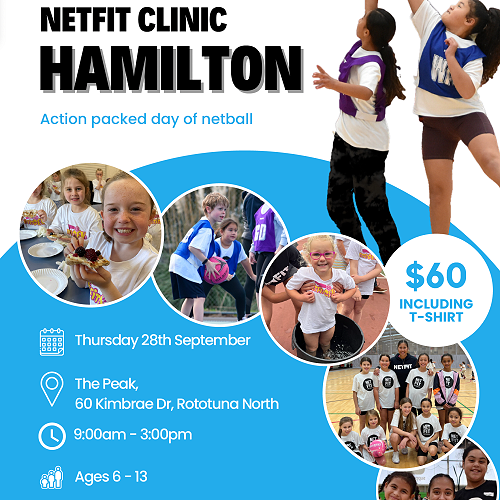 Visit this articleAn action packed day of netball to be held on Thursday, 28th September. This 9am - 3pm session includes skill progression, a limited edition NETFIT clinic t-shirt, personalised feedback and lots of FUN!