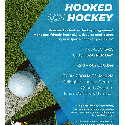 Visit this articleJoin our School Holiday Hockey Programme at the Gallagher Hockey Centre, Queens Avenue, Innes Common, Hamilton from 2nd to 6th October.