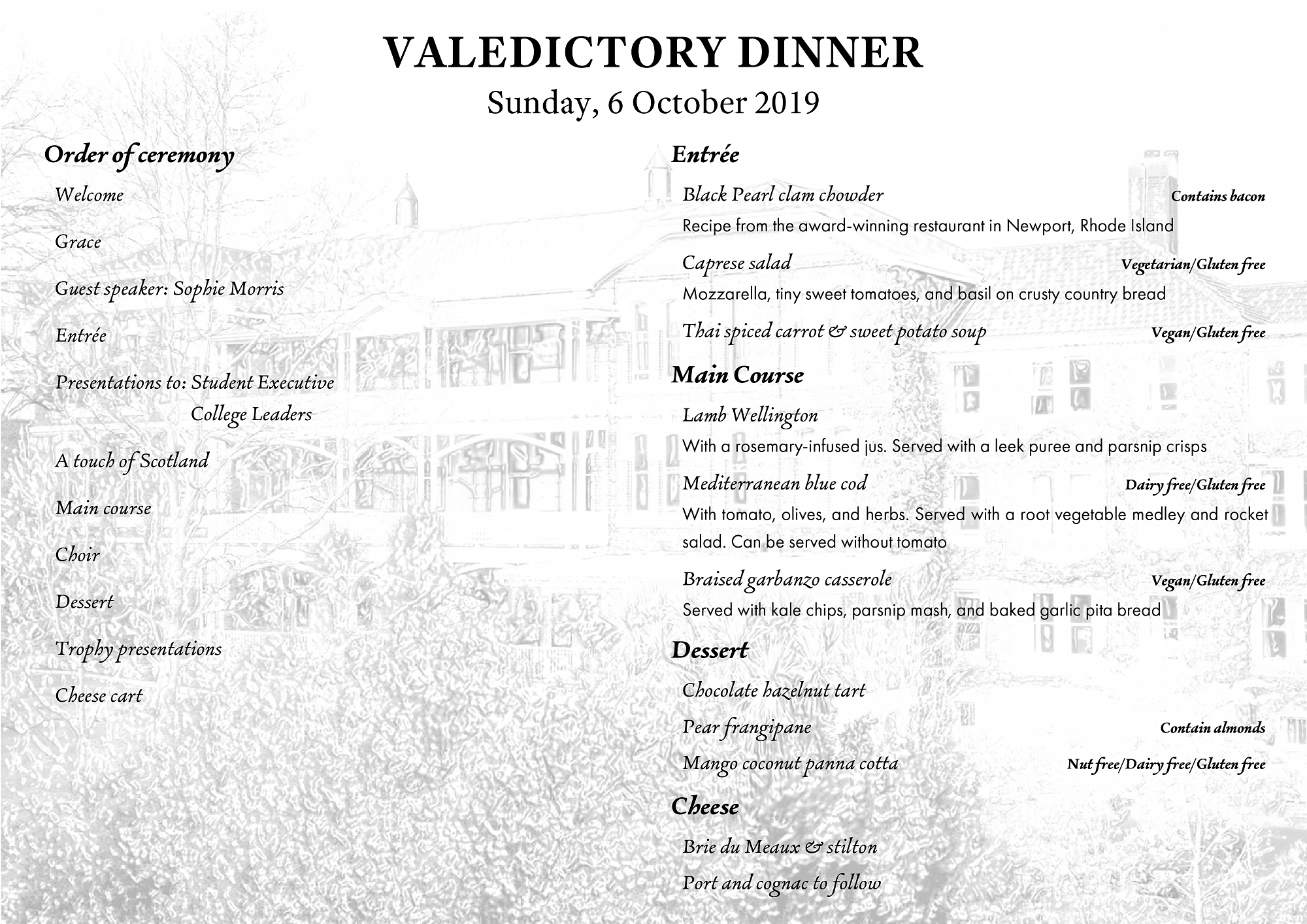 The College's much anticipated Valedictory Dinner took place on Sunday evening, 6 October.