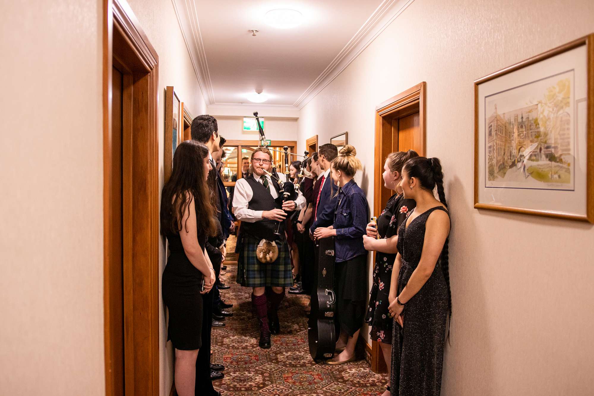 The evening began with a pre-dinner function at 5 pm in the Valentine Common Room for Council Members, College Leaders, the Executive Committee and staff and included wonderful background music provided by Rose Wu (College Leader) playing piano. At 5.40 pm, guests, staff and Members were piped in to the Norris Dining Hall by Murray Tannock, a bagpiper and Otago PhD candidate.