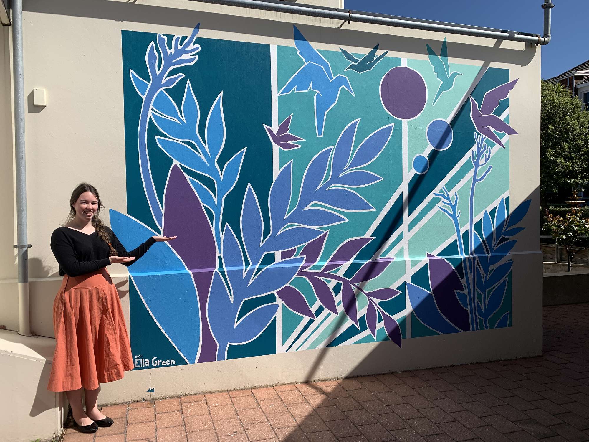 My name is Ella Green, and I am the artist behind the new Mural on the wall of Clyde Wing at St Margaret’s College. I have been painting for most of my life, usually with acrylic, watercolour or ink pen, although I am continually experimenting with my style. In 2019 I received the Glover award for Excellence in Visual Art, as well as coming first in NCEA Level 3 Art. I also received Visual and Technical Arts Honours in 2018 and 2019.