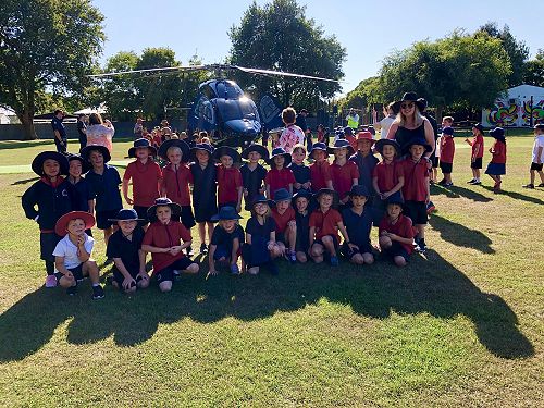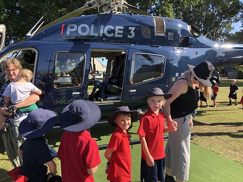 The most amazing thing happened at school today... There was a police helicopter that goes everywhere in New Zealand to help people. It is so helpful. It was a very big helicopter. We got to pat police dogs too. The helicopter was black. I was wowed by the helicopter. It was shiny and noisy too. It hovered over us into the sky.