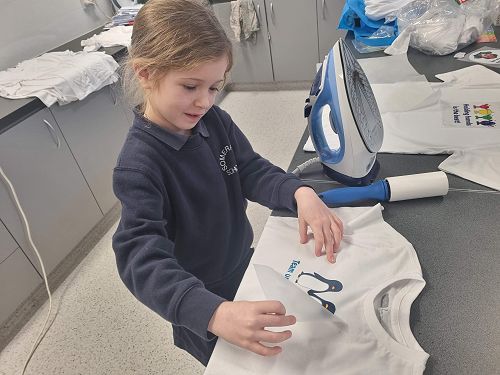 Wow! What an amazing job our budding young designers have done. They thought of a positive message, made some concept designs to show it, received feedback and made improvements and now they have a finished final design which today they applied to their very own T-shirt!