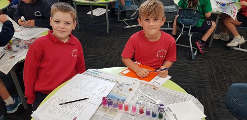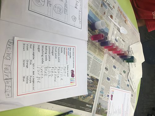 For science this term, the Year 3 & Year 4 students have been investigating the reactions of mixing baking soda and an acid - vinegar, fruit juice and even tomato sauce! The focus has been on observing carefully and reporting accurately. From the popular volcano experiment, we moved on to making pop rockets powered by baking soda and vinegar (very successful) and rounded off the unit by investigating acids and bases using red cabbage juice, which changed colour according to what was added to it. A perfect way to introduce the topic of "Potions", which many of the children asked for. From all accounts, the children have really enjoyed their Friday science sessions this term.