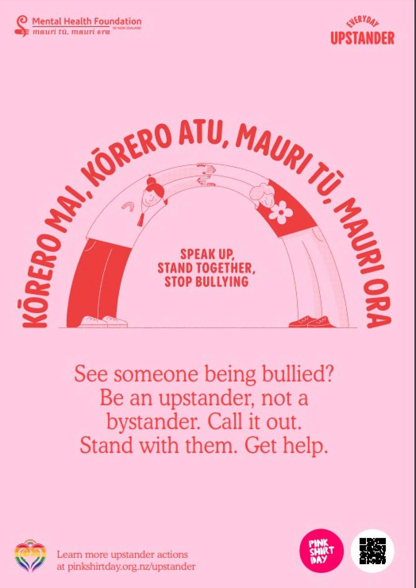 Somerfield Te Kura Wairepo is joining the movement on Pink Shirt Day (Friday, 19 May 2023), and encouraging our staff and students to Kōrero Mai, Kōrero Atu, Mauri Tū, Mauri Ora – Speak up, Stand Together, Stop Bullying! Bullying in Aotearoa is a real problem.