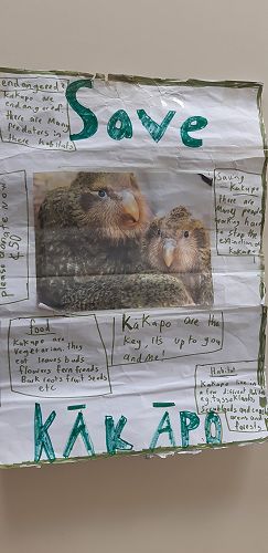 I read a non-fiction book that talked about the top five ugliest animals and Kakapo was one of them. Kakapos are a New Zealand bird so I decided to make a project about it and found out they were endangered so I wanted to start a fundraiser. I started making a poster with a donation box because I wanted to sponsor Kakapo for Somerfield School with a goal of $100. After a while, I decided to start a raffle to win a Kakapo toy that made a noise to raise more money because I wasn't getting much money from the donation box. Many people were interested and I started going around classes to talk about my fundraiser. Then I went around to my family during the break and now, I have raised up to $117.30!