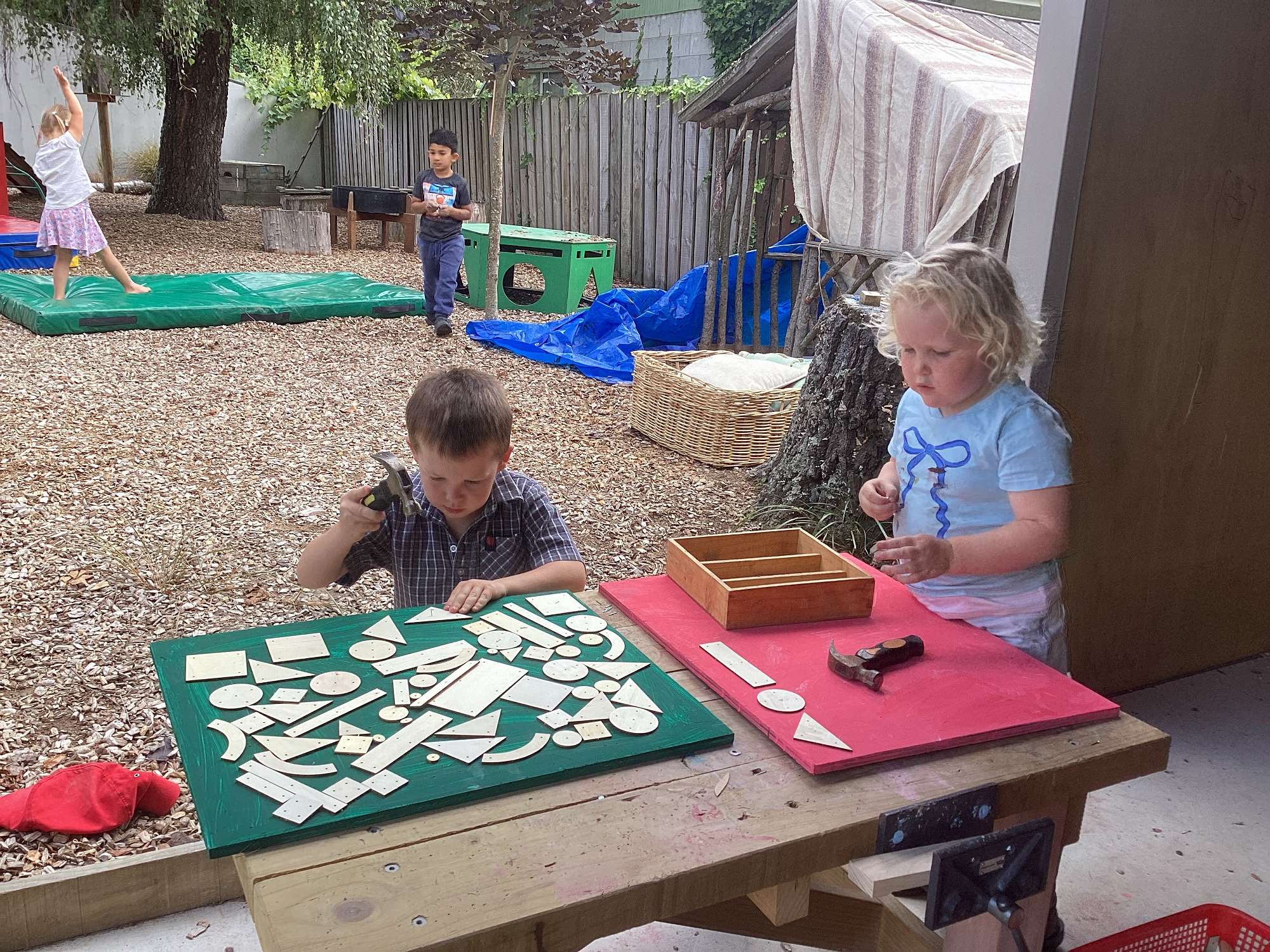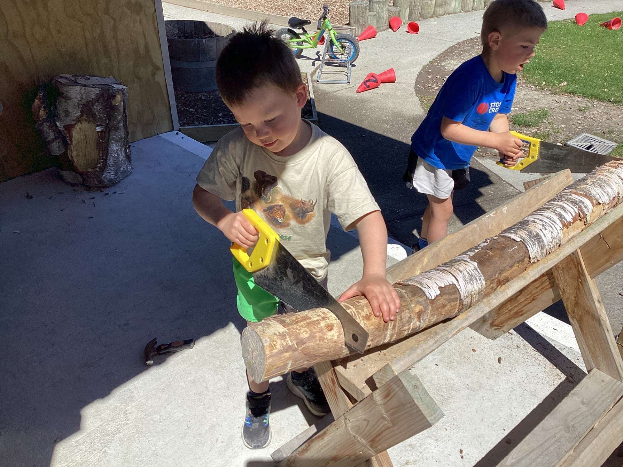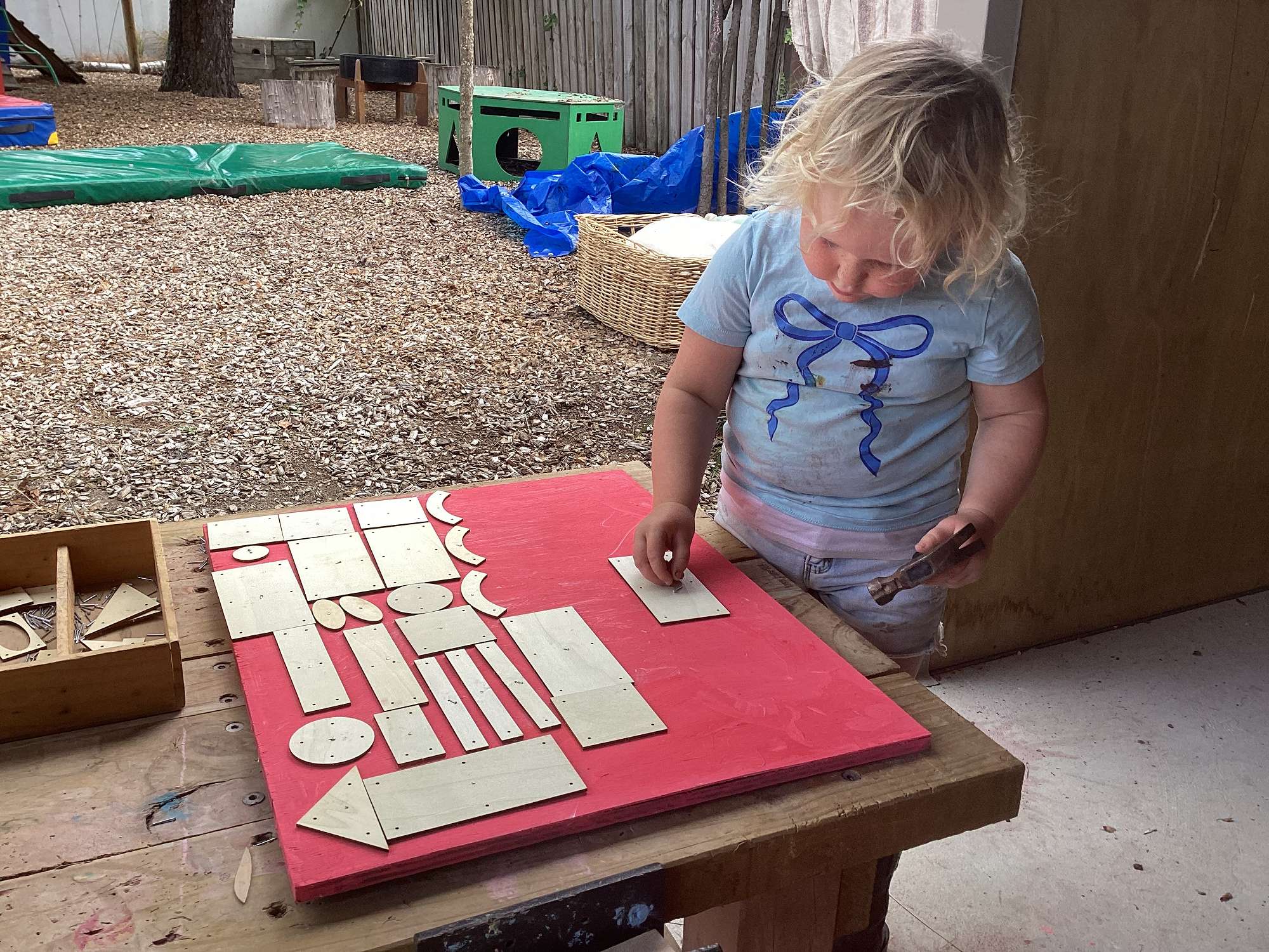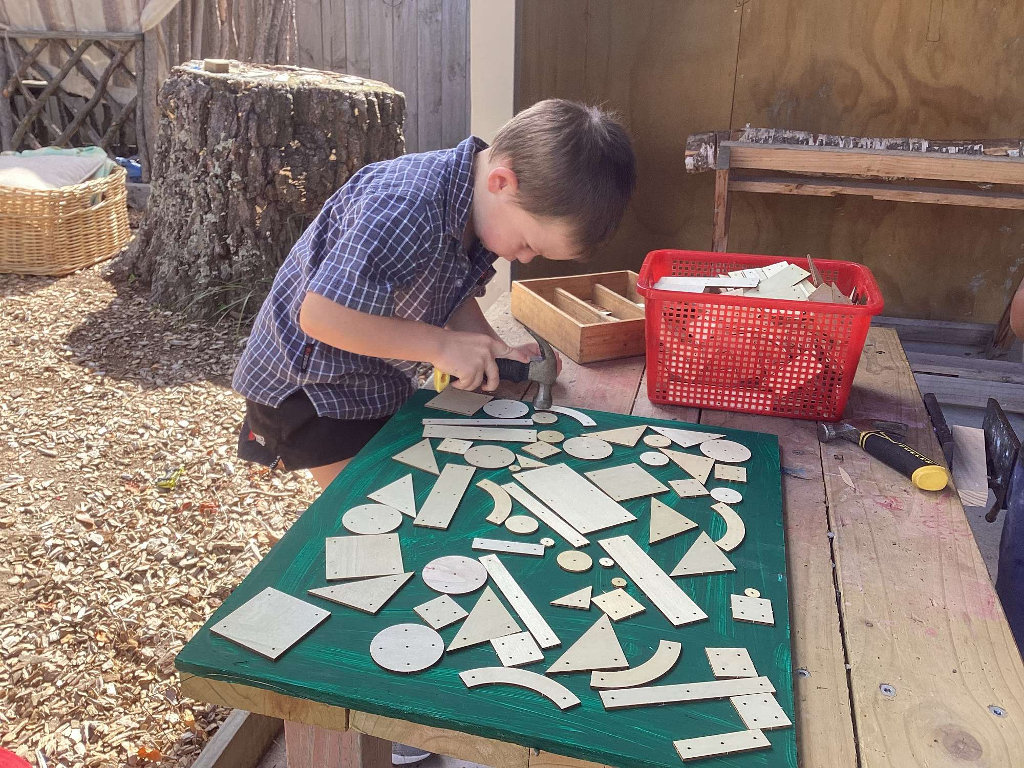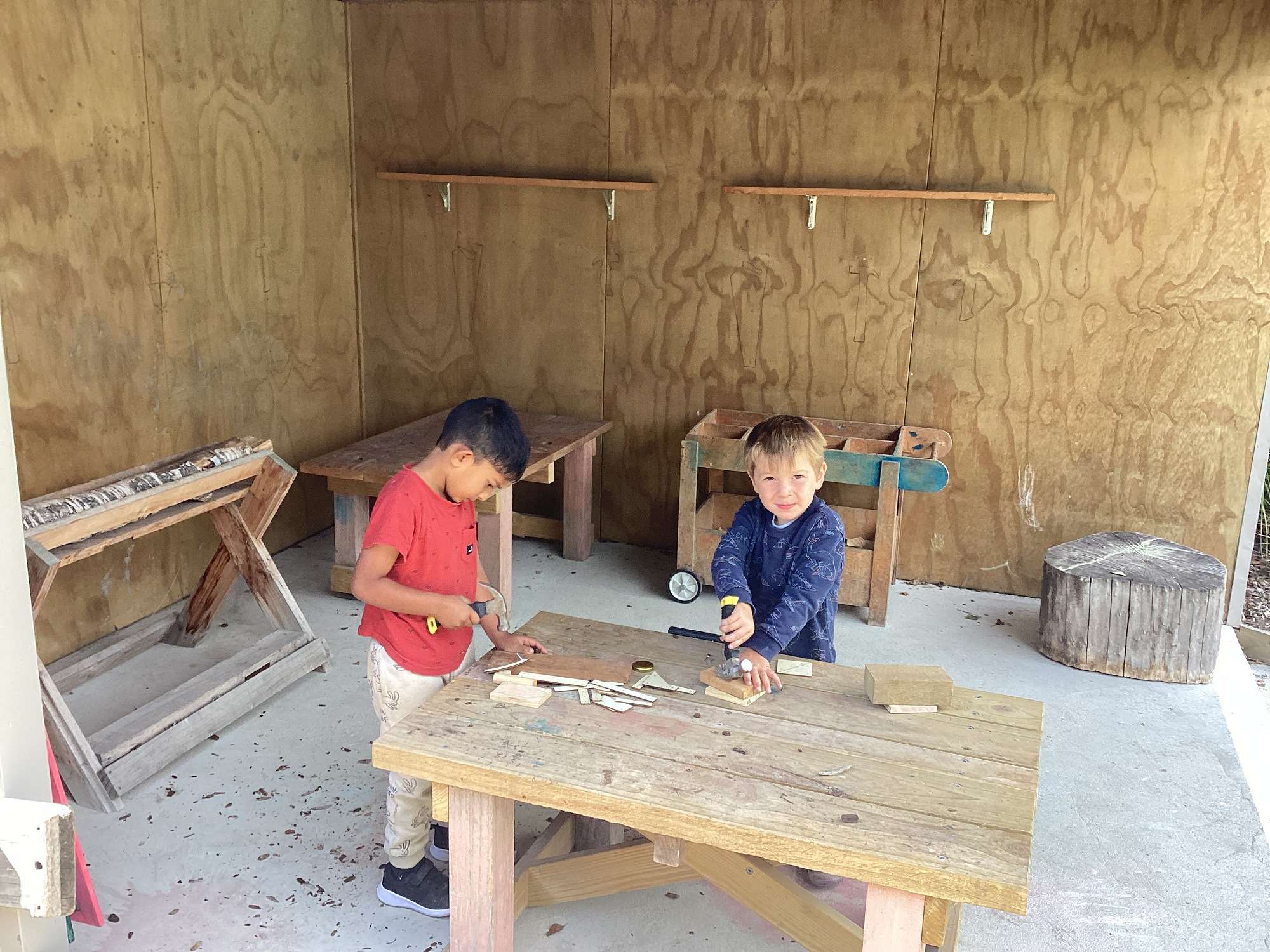 Carpentry encourages tamariki to explore the properties of different materials (wood, nails, glue, etc.) and the concepts of structure, balance, and design. Carpentry play provides tamariki with an opportunity to explore, create, communicate, and contribute to their environment in a meaningful and hands-on way. Through carpentry, tamariki can develop fine motor skills, problem-solving abilities, and creativity.