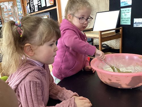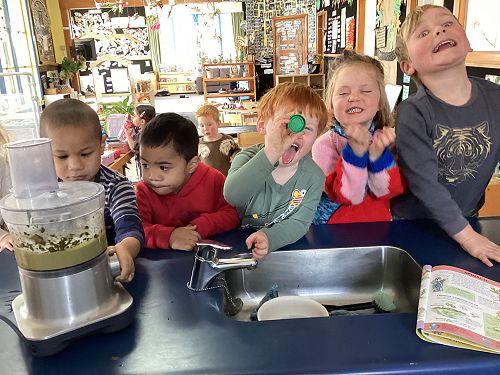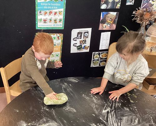 This week we took some delicious silverbeet and oregano from our te māra kai. We cleaned it and boiled it up. Adding it to the blender with an egg and some flour and whizzed it all together......the blender was a very exciting piece of equipment for everyone as they turned the dial to blitz the ingredients.