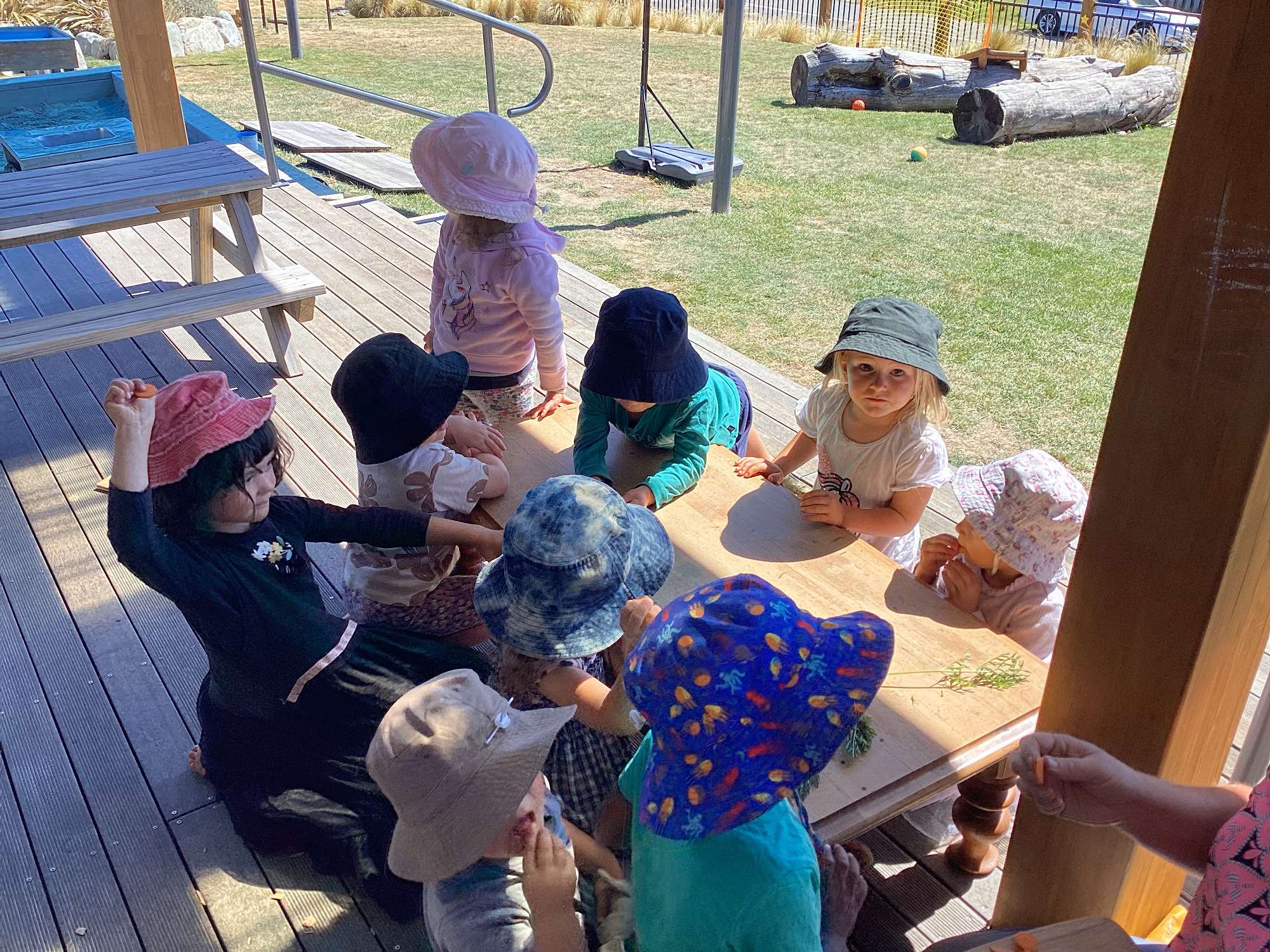 Lake Tekapo Kindergarten harvested a couple of our very own carrots from the garden, gave them a wash, and cut them up to taste.