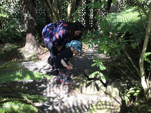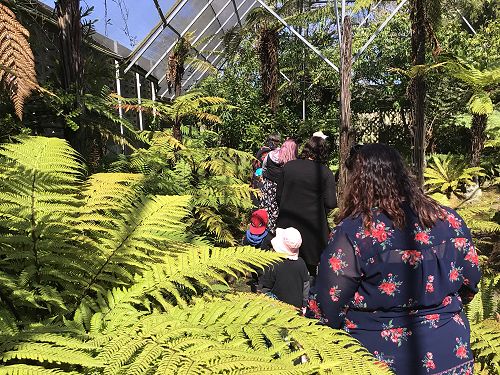 While at the botanical gardens tamariki, kaiako, and whānau explored the fern house….. trit-trotting along the path over the bridge and around the hidden tracks. Some tamariki sung "Going on a bear hunt" song while they walked along.